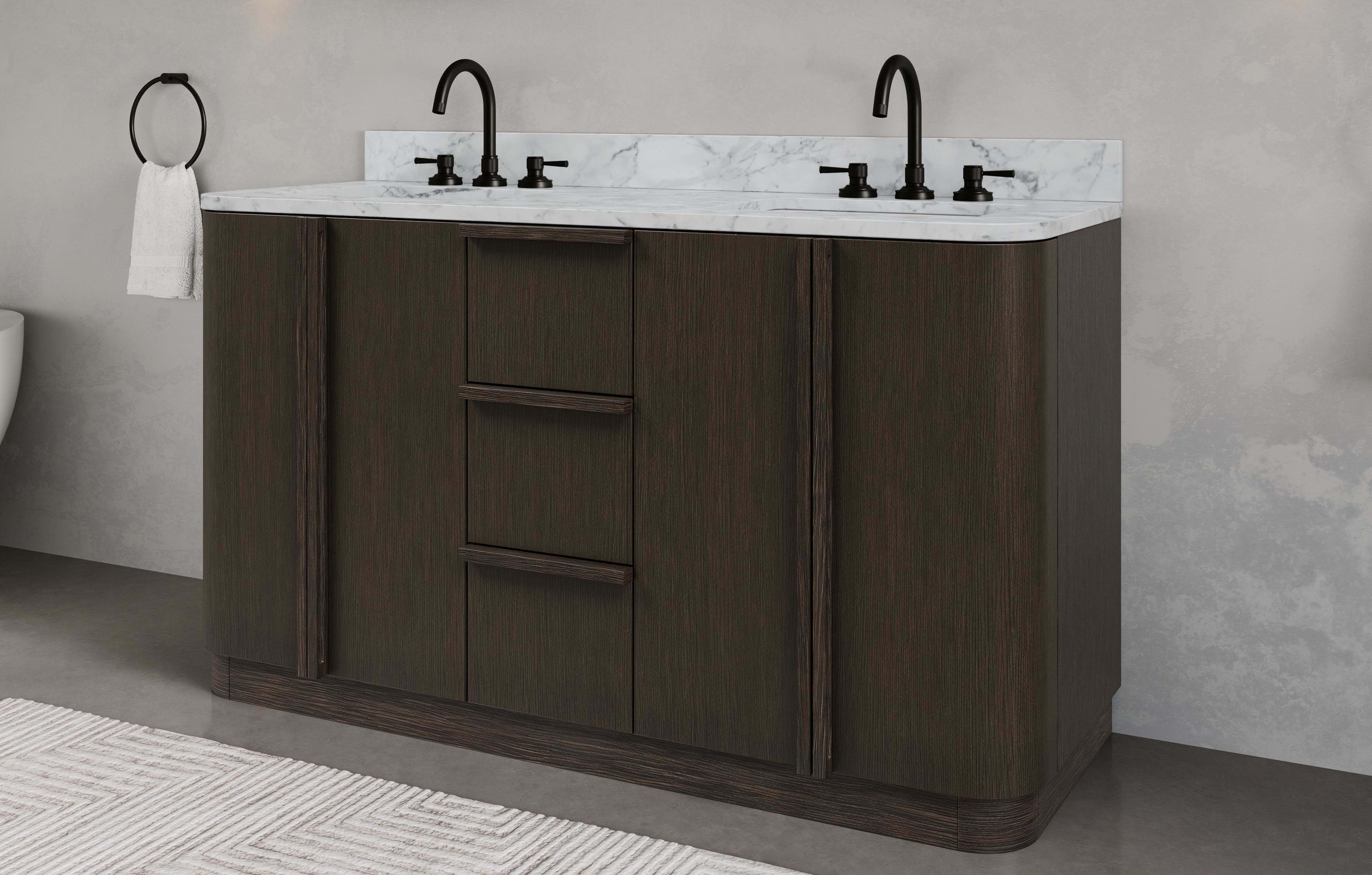 Oakman 72 In. Double Sink Pre-Assembled Mid-Century Style Bathroom Vanity With 1" Carrara White Marble Top