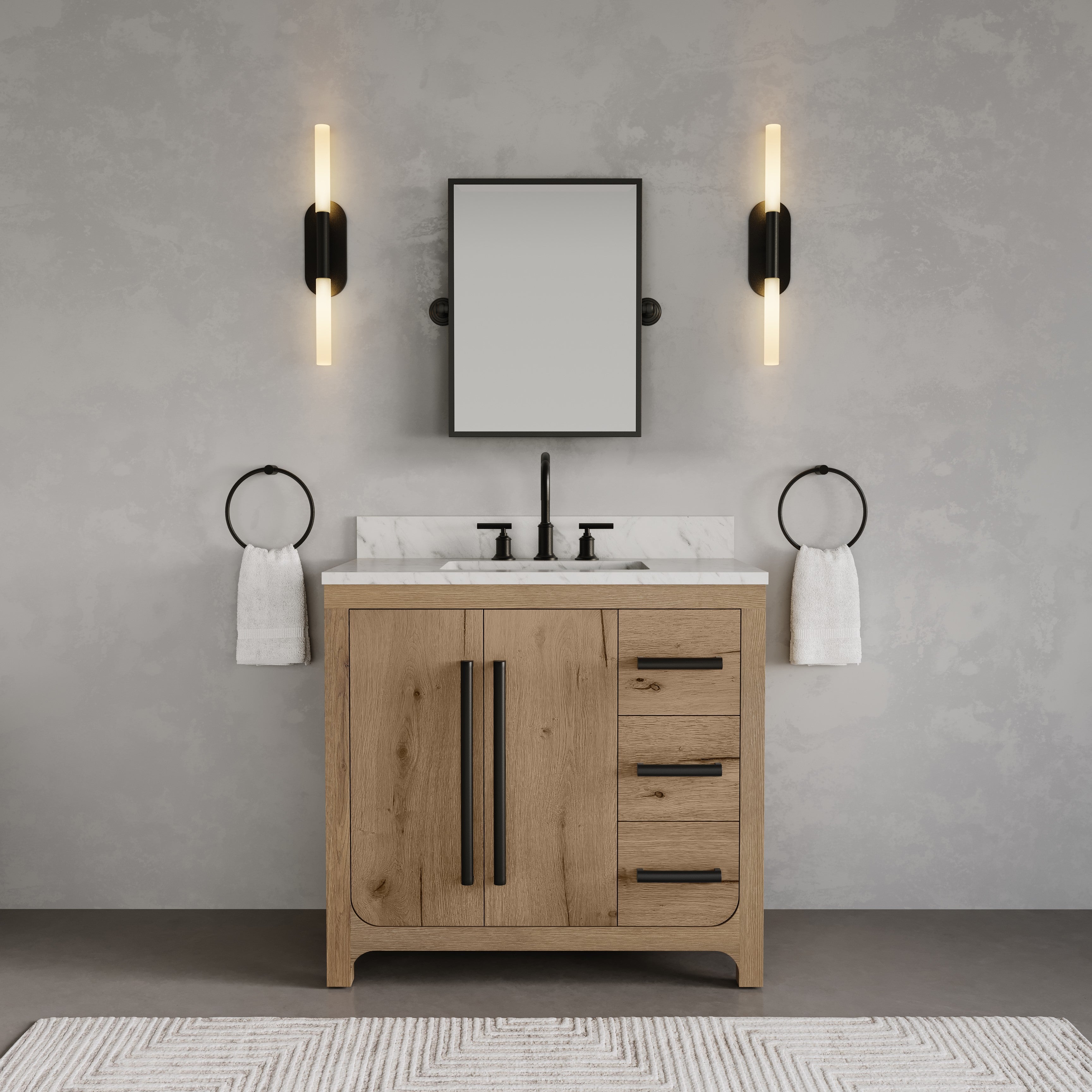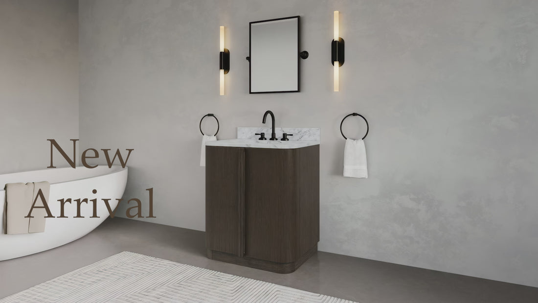 Perris 36 In. Single Rectangle Sink Pre-Assembled Mid-Century Style Bathroom Vanity With 1" Engineered Carrara White Marble Top