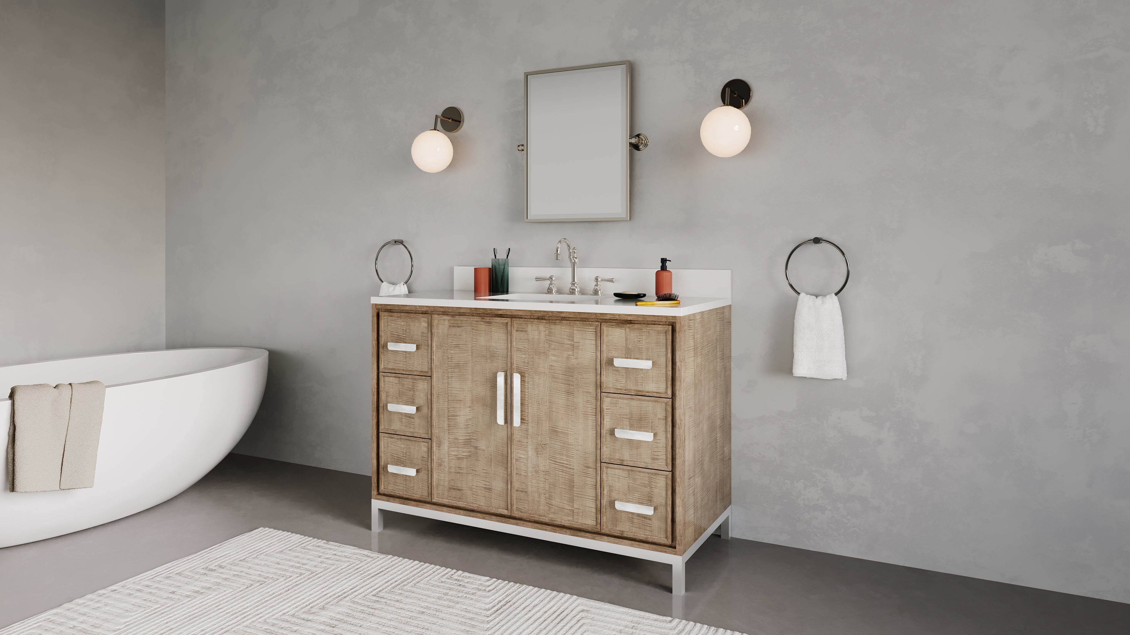 Sequoia 48 In. Single Sink Pre-Assembled Mid-Century Style Bathroom Vanity With 2" Whitebrook Quartz Top