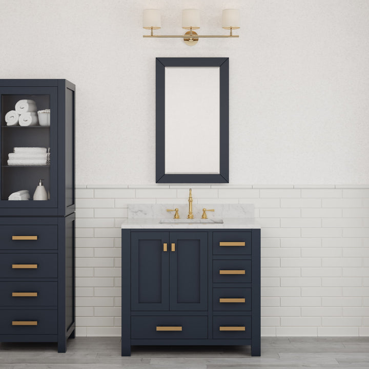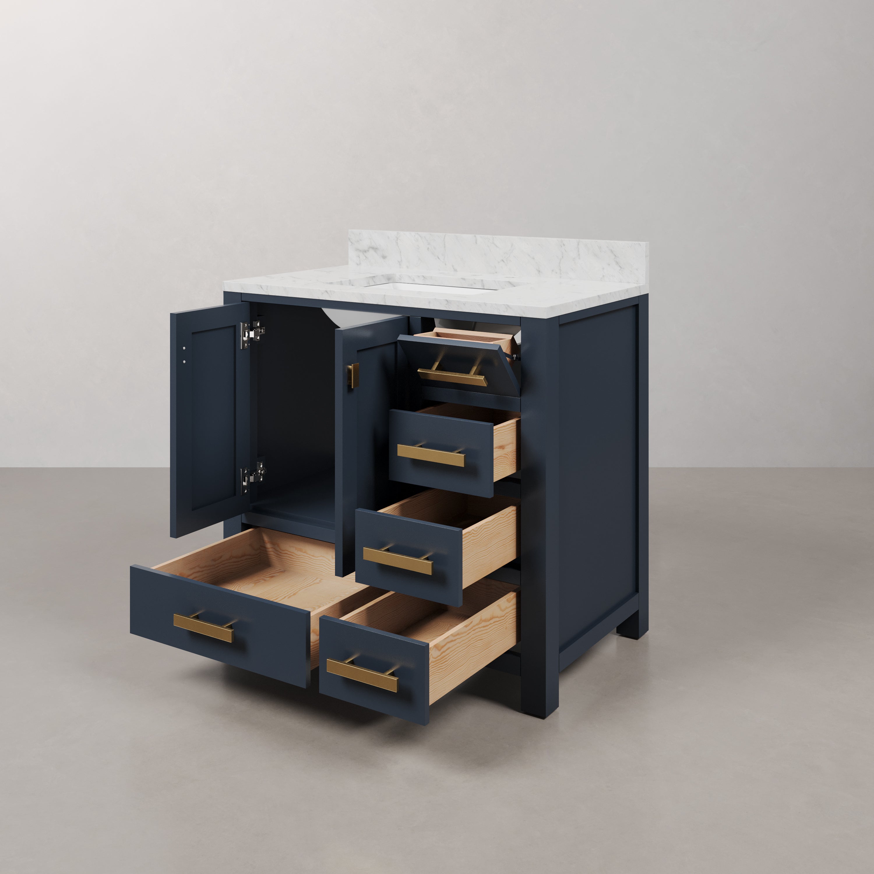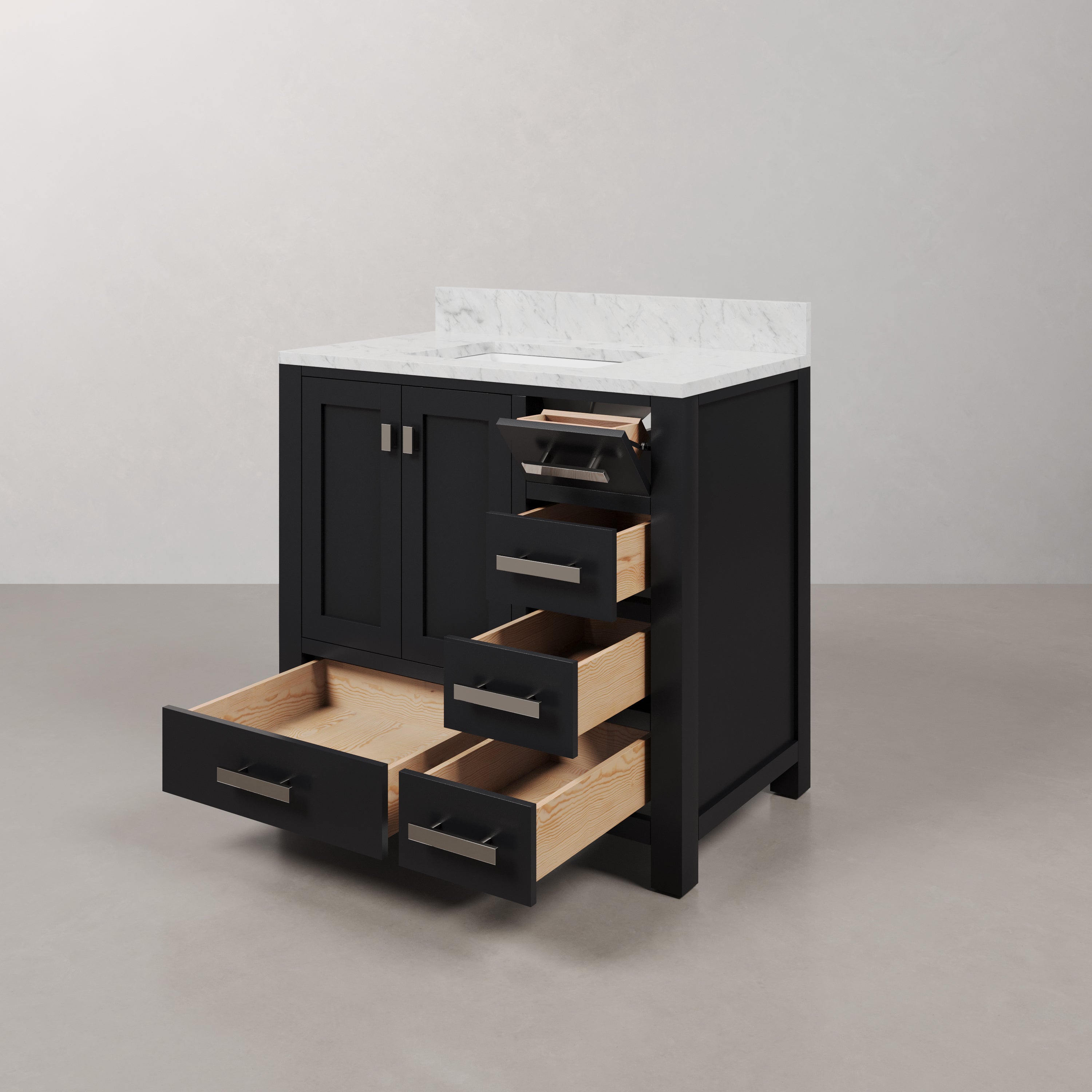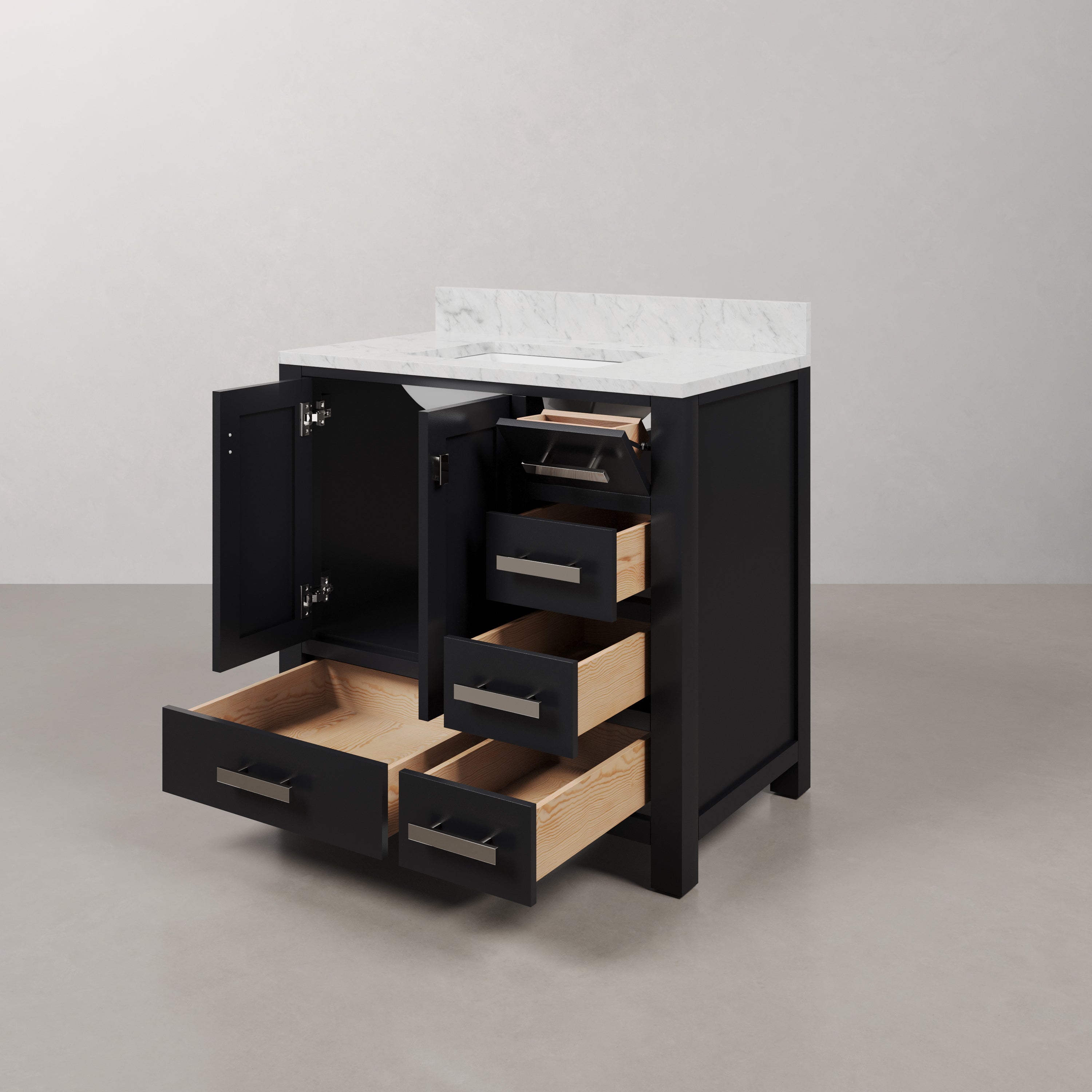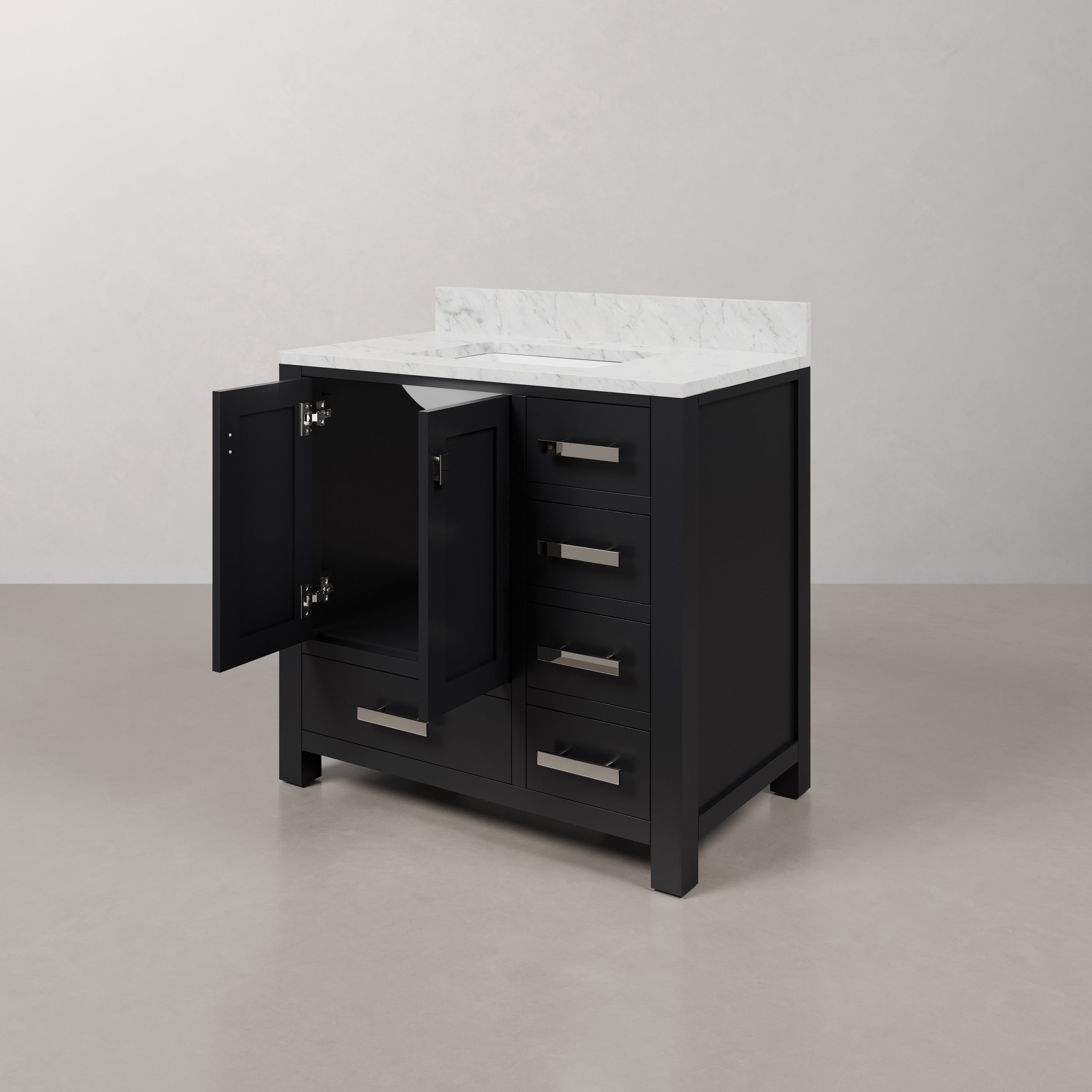 Madison 36 In. Single Sink Pre-Assembled Transitional Style Bathroom Vanity With 1" Carrara White Marble Top