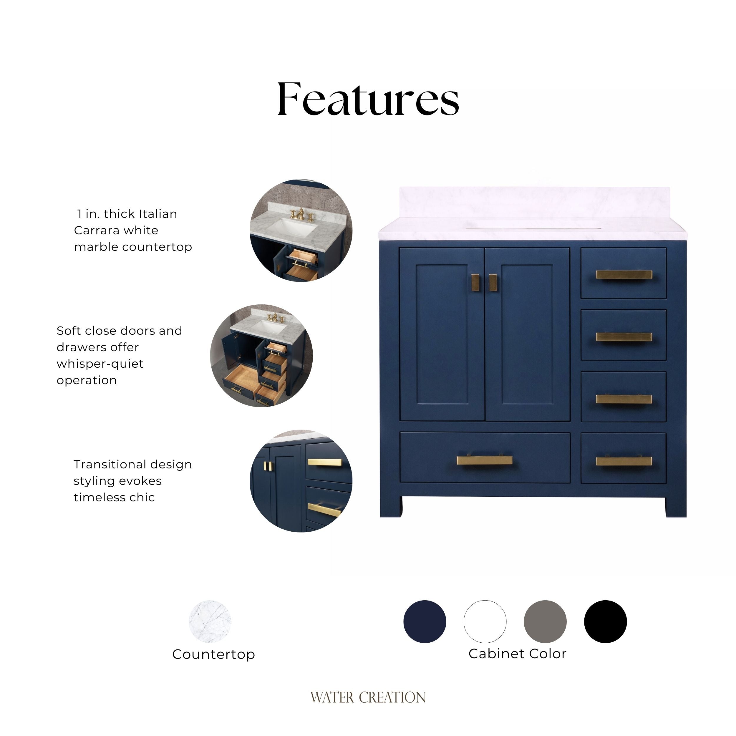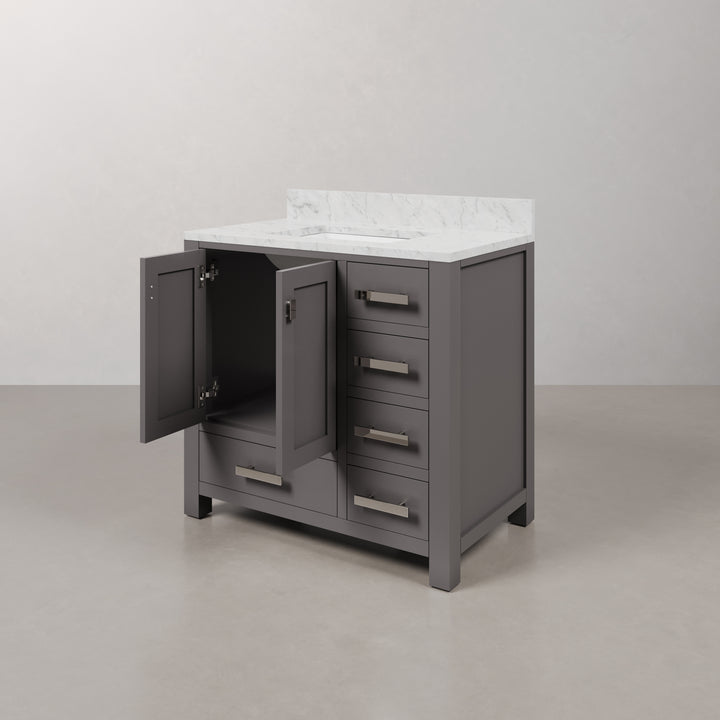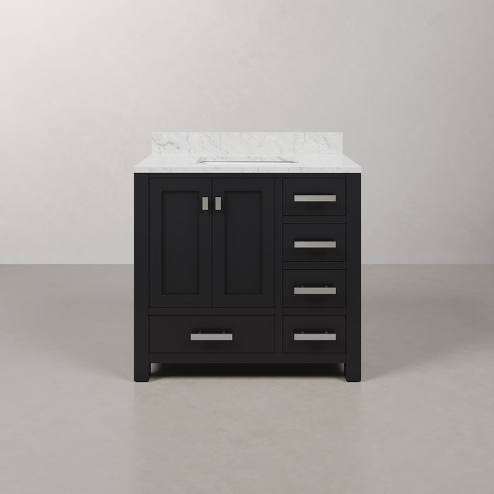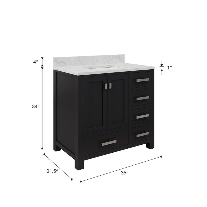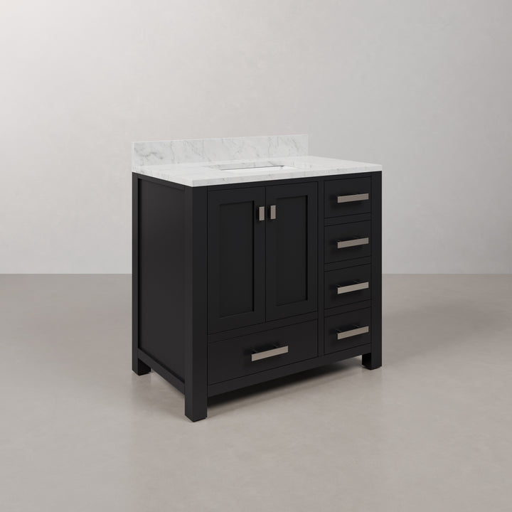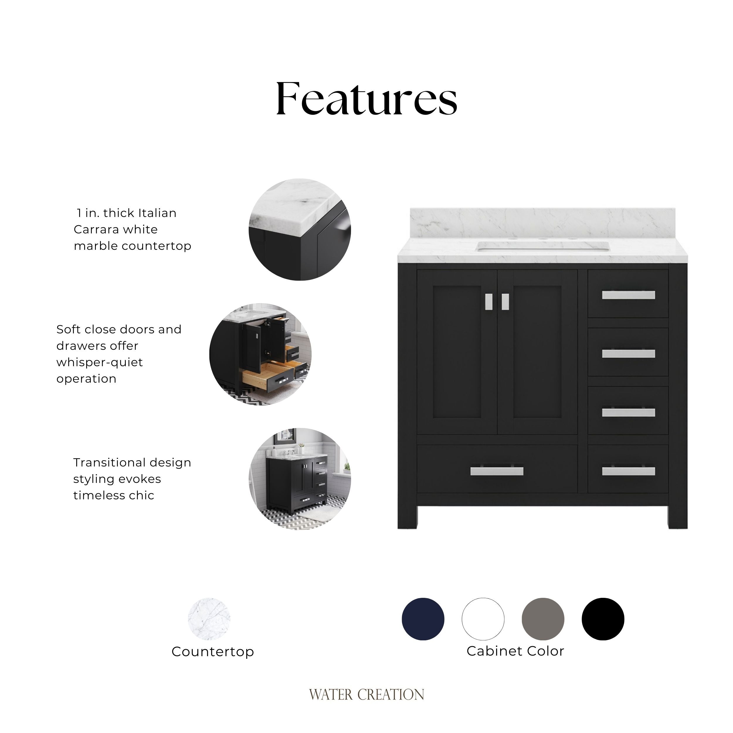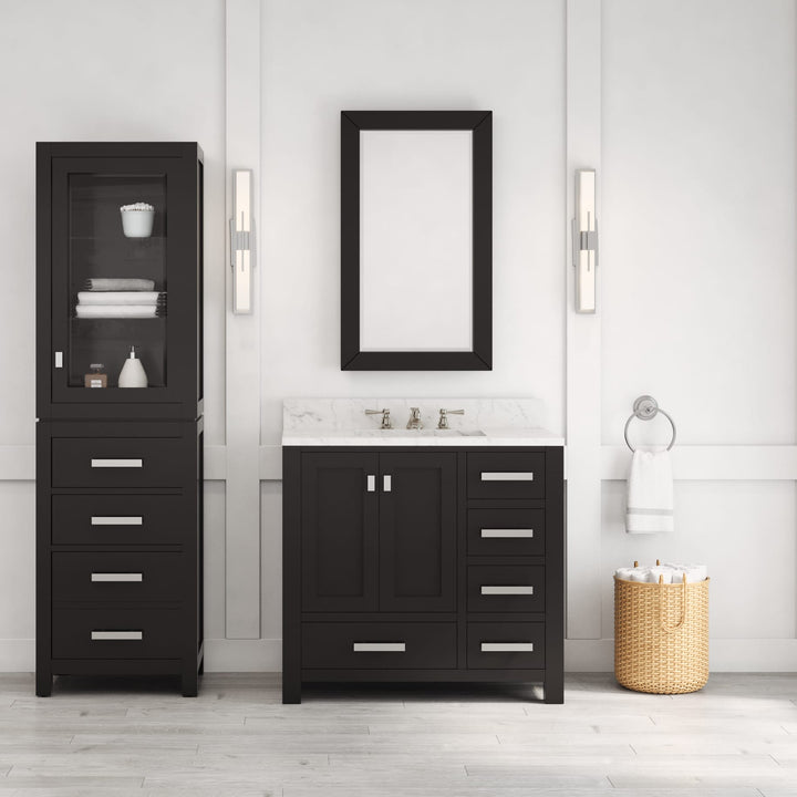 Madison 36 In. Single Sink Pre-Assembled Transitional Style Bathroom Vanity With 1" Carrara White Marble Top