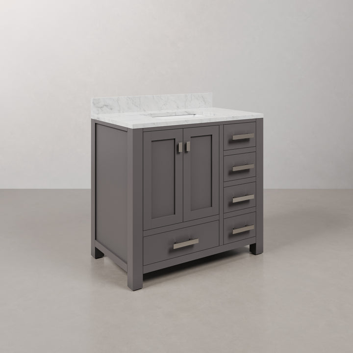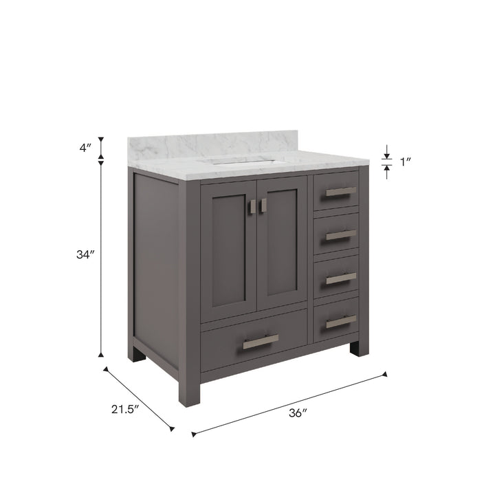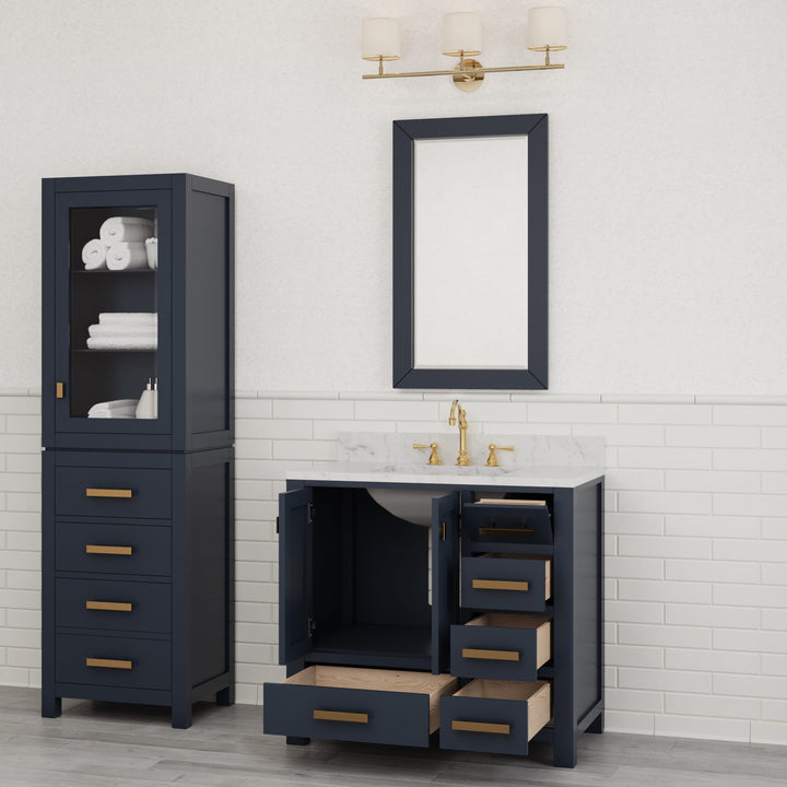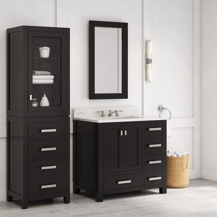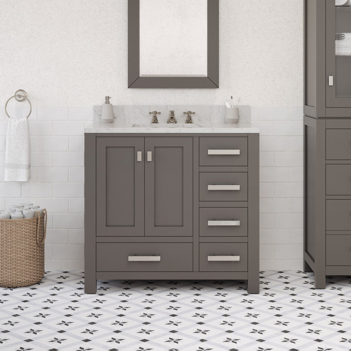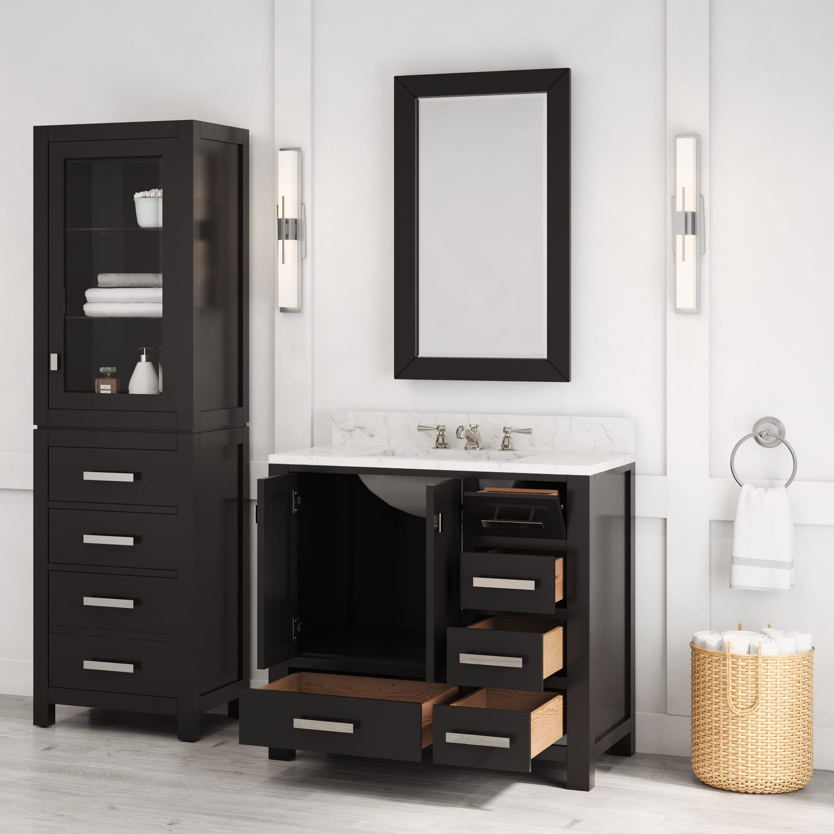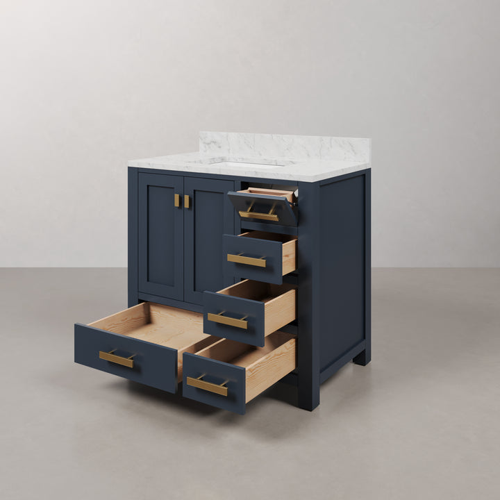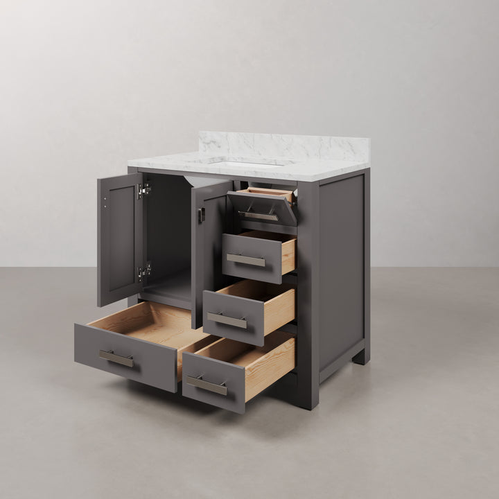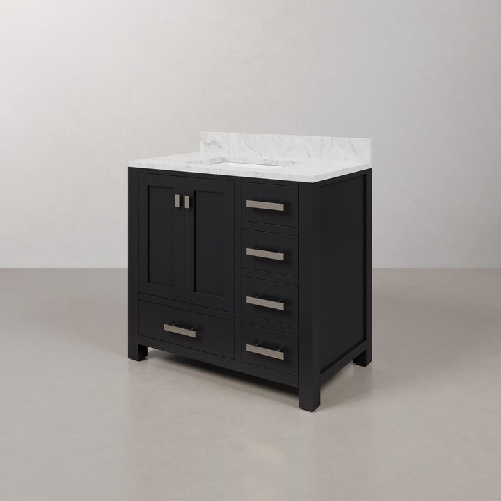 Madison 36 In. Single Sink Pre-Assembled Transitional Style Bathroom Vanity With 1" Carrara White Marble Top