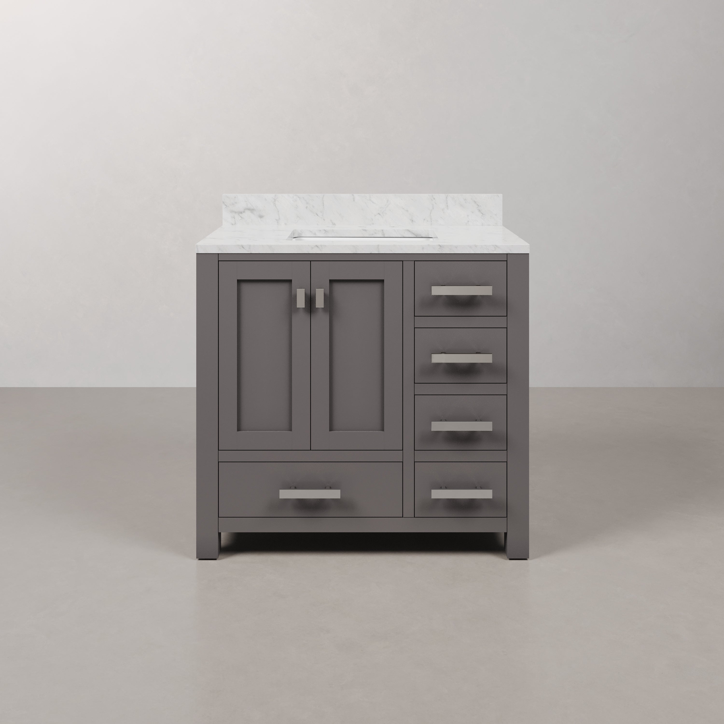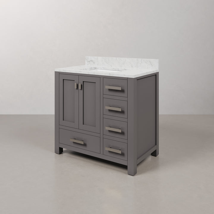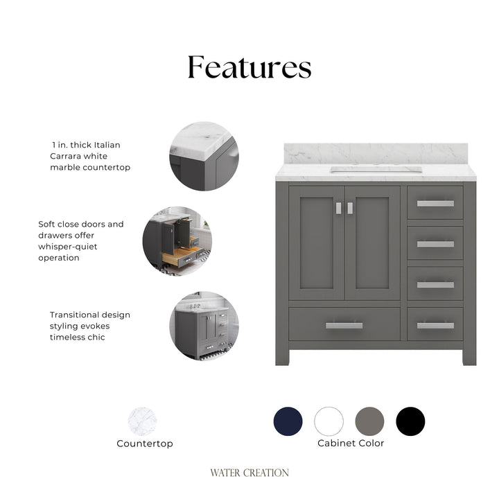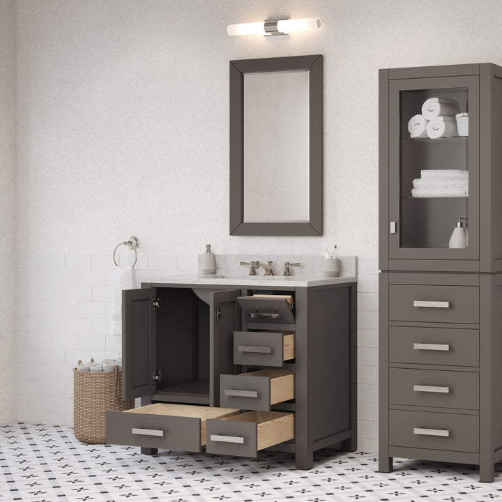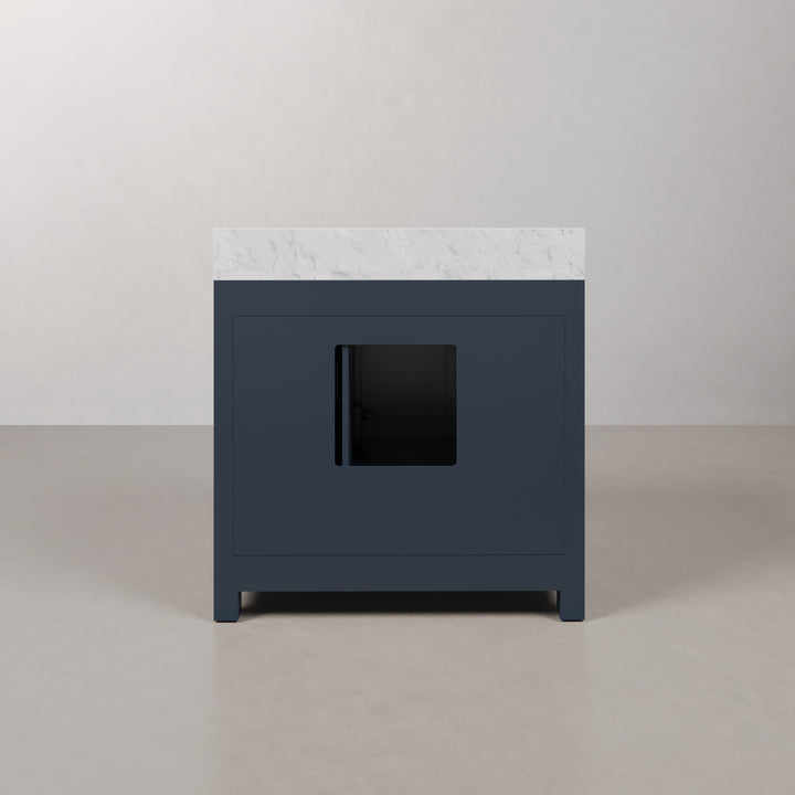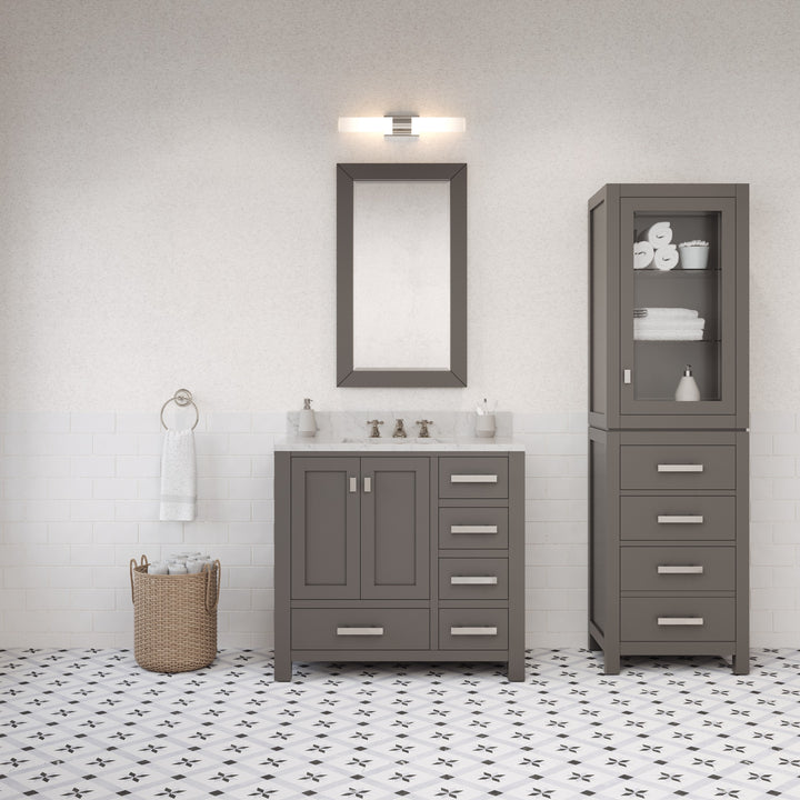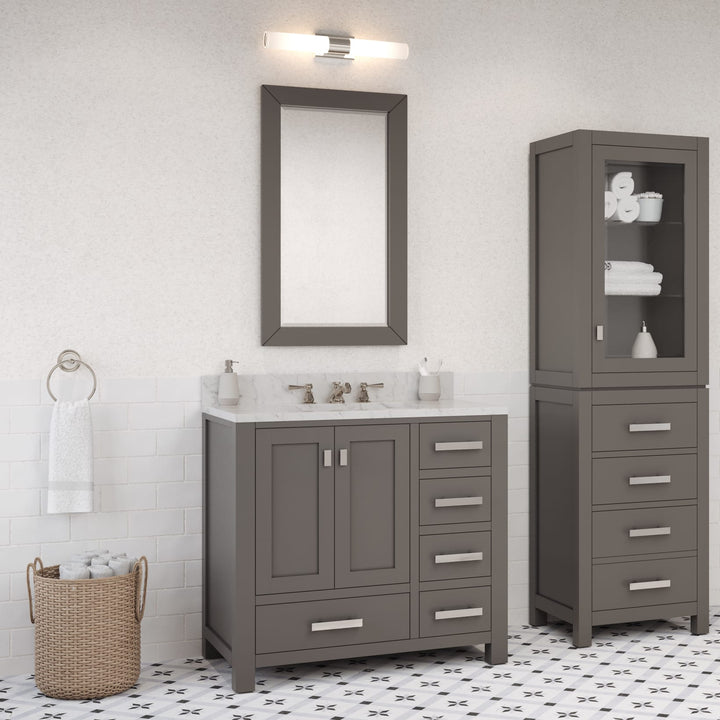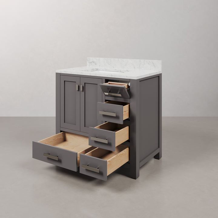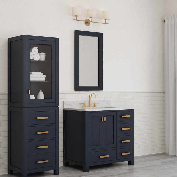 Madison 36 In. Single Sink Pre-Assembled Transitional Style Bathroom Vanity With 1" Carrara White Marble Top